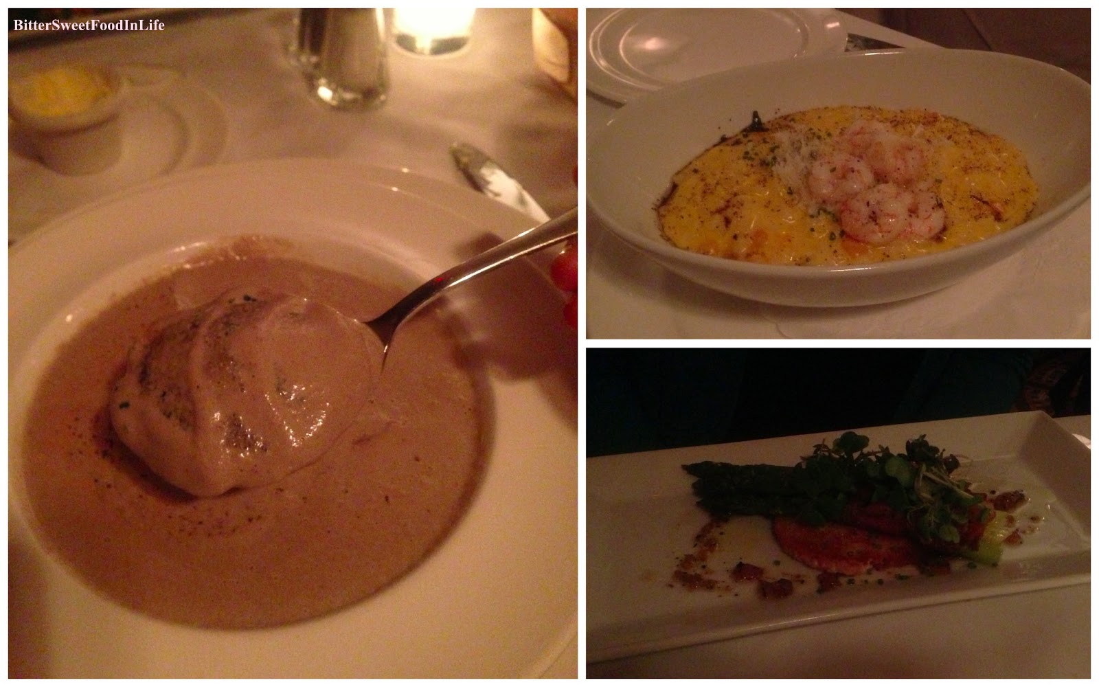 Starting with appetizers, there was the Mushroom Veloute, Winter Squash Risotto and the Asparagus & Bucheron Salad. The salad was the lightest whereas the soup and the risotto was very heavy in taste and felt overly seasoned.